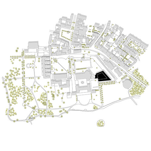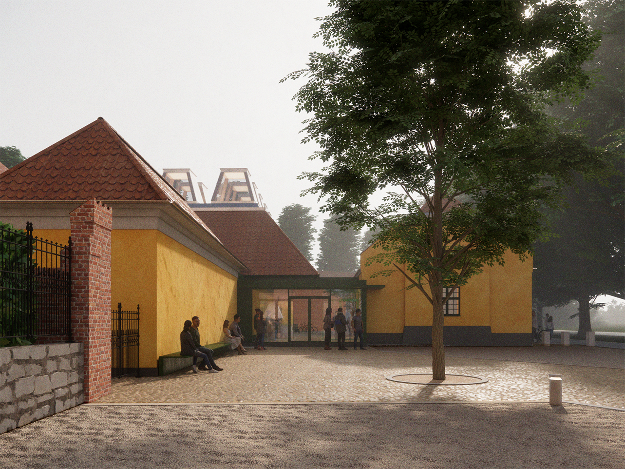 Sorø Akademis ønske om et samlingssted indfries med et overdækket rum med et rigt ovenlys og med Avlsgårdens facader som ydre perimeter. Der synes at være en tvetydighed i rummet. Er man ude – eller inde.