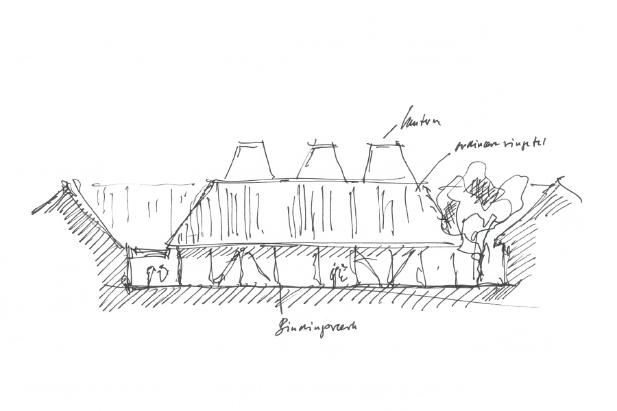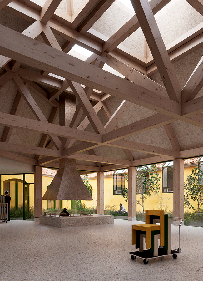 Helheden bliver en bygning, der rækker tilbage i tiden til kendte strukturer og materialer, samtidig med at den fremstår som et bæredygtigt barn af vores tid.